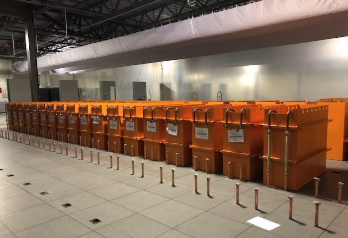 Things are really taking shape at our datacentre in Houston this week. As the first tanks roll in to Skybox our team are wasting no time connecting them to the labyrinth of pipes underneath the floor.
