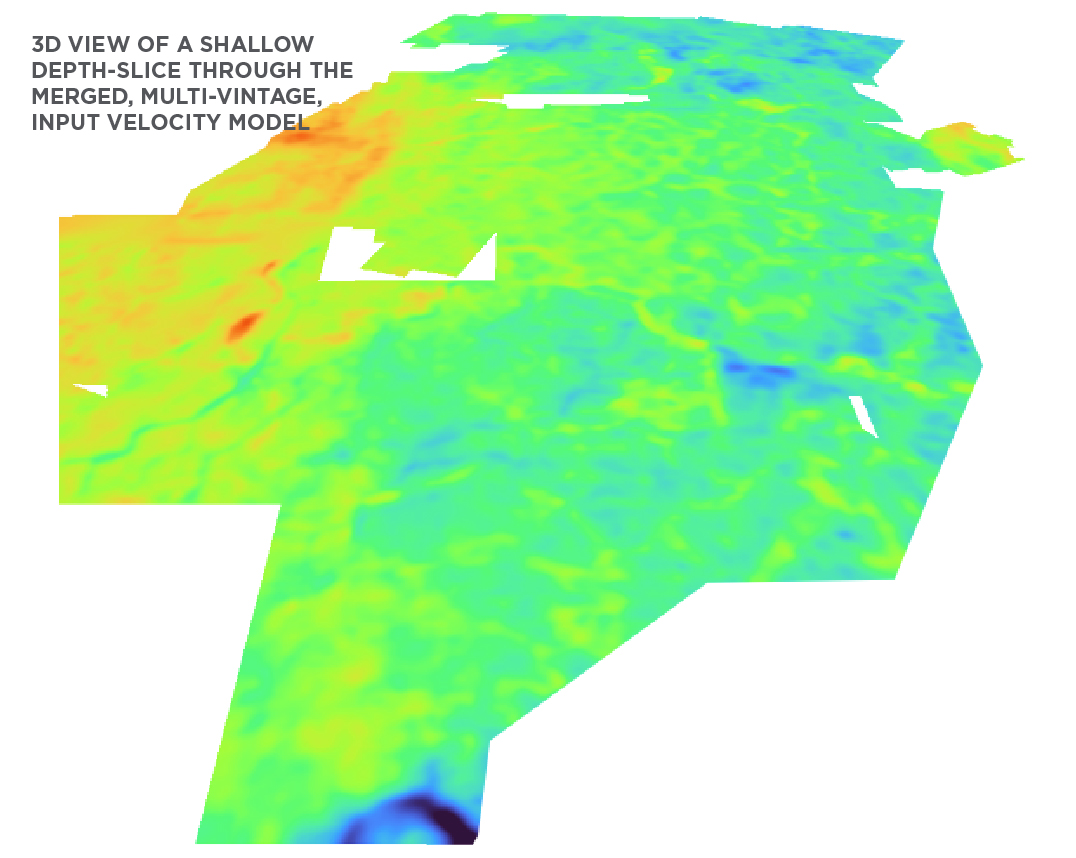 A JV project between TGS and DUG, the “Peninsular Malaysia Mega Merge 3D” involved 39 different surveys (including 3 OBC surveys). With data vintages from 1989 to 2014 the combined area was over 17,000 square kilometres. The high-resolution velocity model was built up to a maximum frequency of 35 Hz.