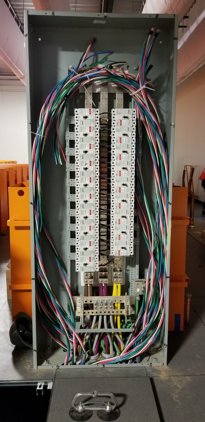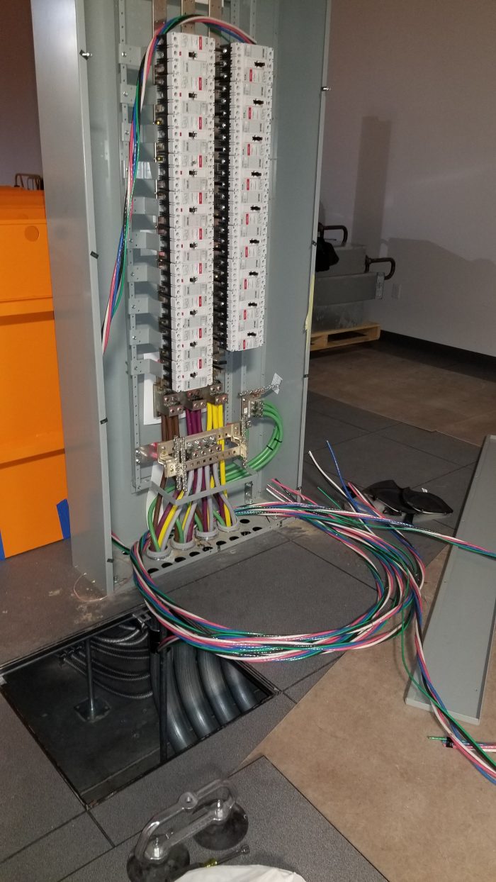 We’ve discussed before the importance of power to the datacentre, and how when fully installed the initial DUG McCloud Houston datacentre will use 15 megawatts of power every hour. Inside many of the 1MW panel boards that line the north wall wiring has been completed, with more precut MW wiring arriving in the coming days.