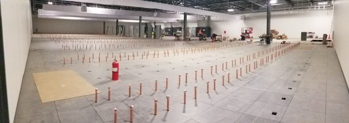 Inside the data centre, a veritable forest of pipes has grown. 1,444 cooling pipes to be exact, each one rising from precision-cut holes in the floor. With this many pipes it’s easy to see why every detail has to be perfect.