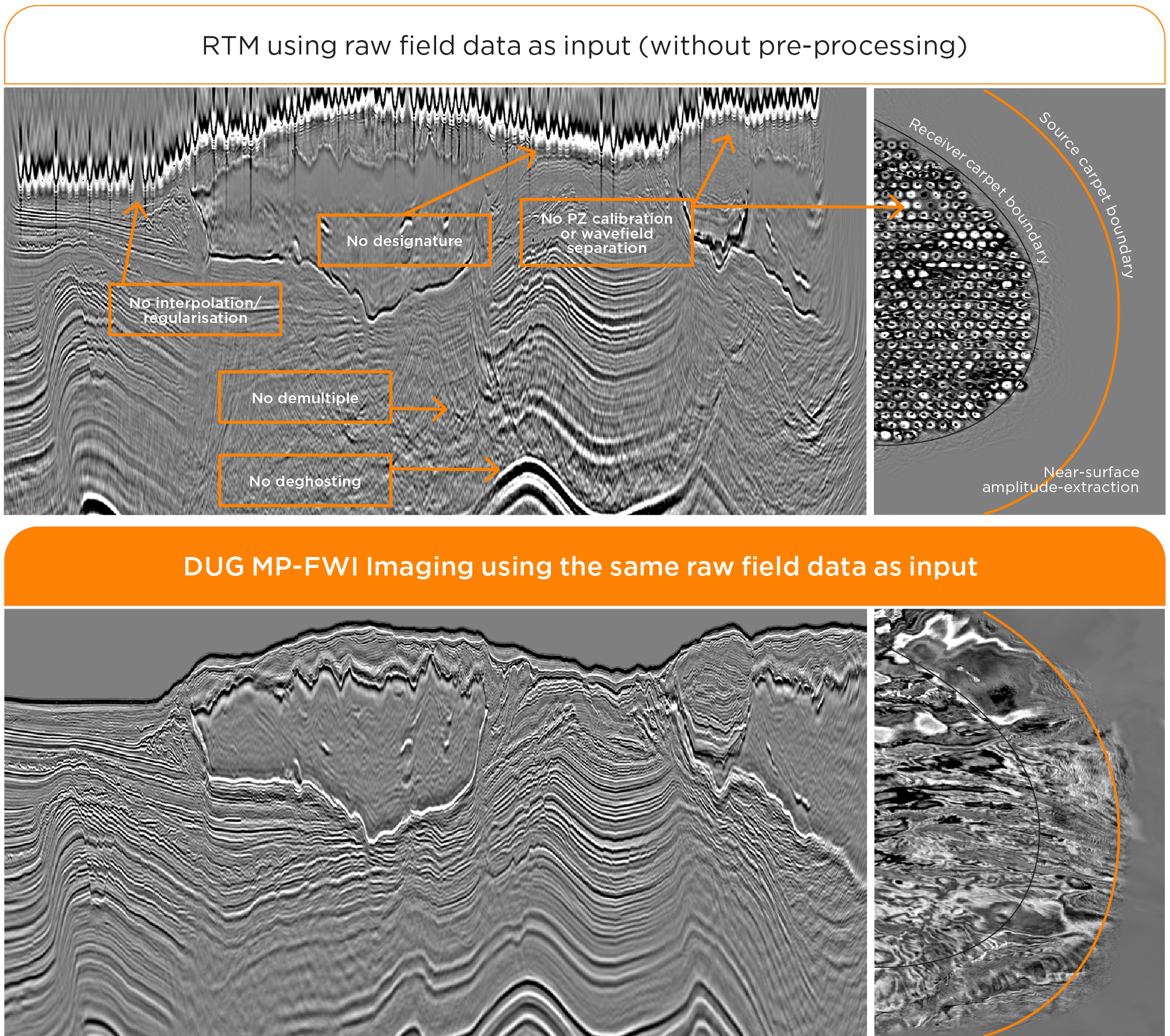 DUG MP-FWI Imaging uses superior physics to get the most out of the recorded data, delivering unsurpassed imaging with rapid turnaround. It is a complete replacement for the traditional processing and imaging workflow.