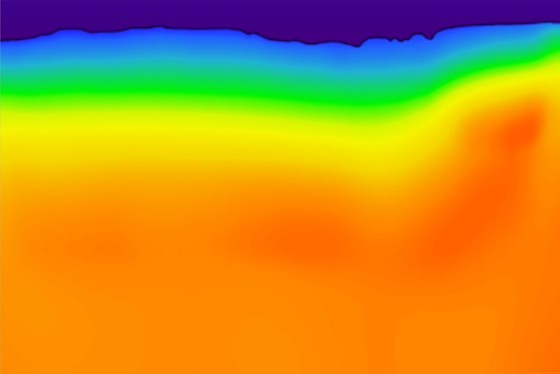 Shallow-water environments are notoriously challenging for conventional processing workflows due to the presence of strong, short-period multiples that obscure primary signal. In this shallow-water dataset from the Barents Sea, DUG MP-FWI Imaging generated a high-resolution image up to 110 Hz. (Data courtesy of Aker BP)
