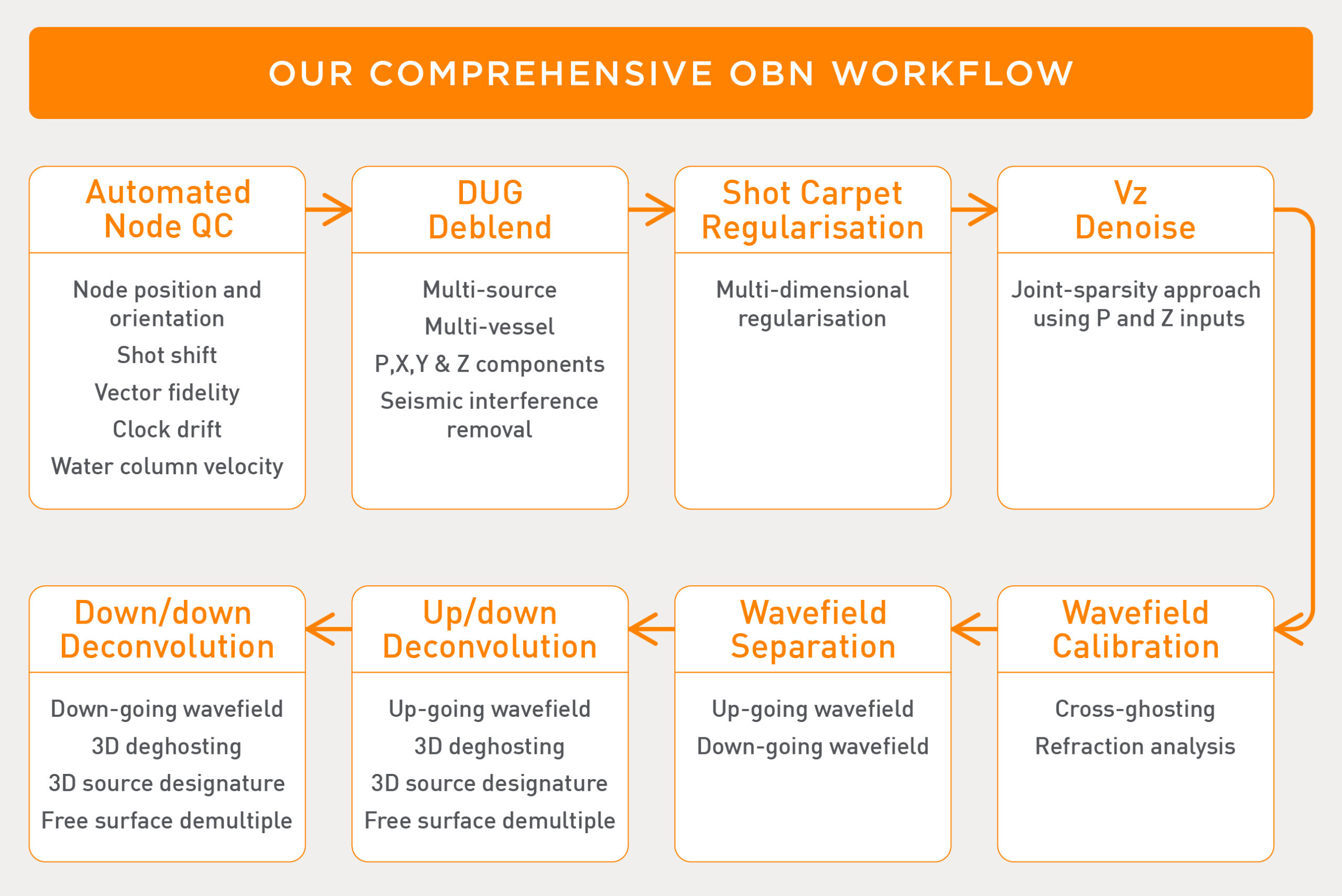 Highly efficient multi-vessel, multi-source OBS surveys are now a tried and tested reality thanks to DUG Deblend. Reap the benefits of rich azimuthal information with our advanced imaging algorithms, including Multi-parameter FWI.