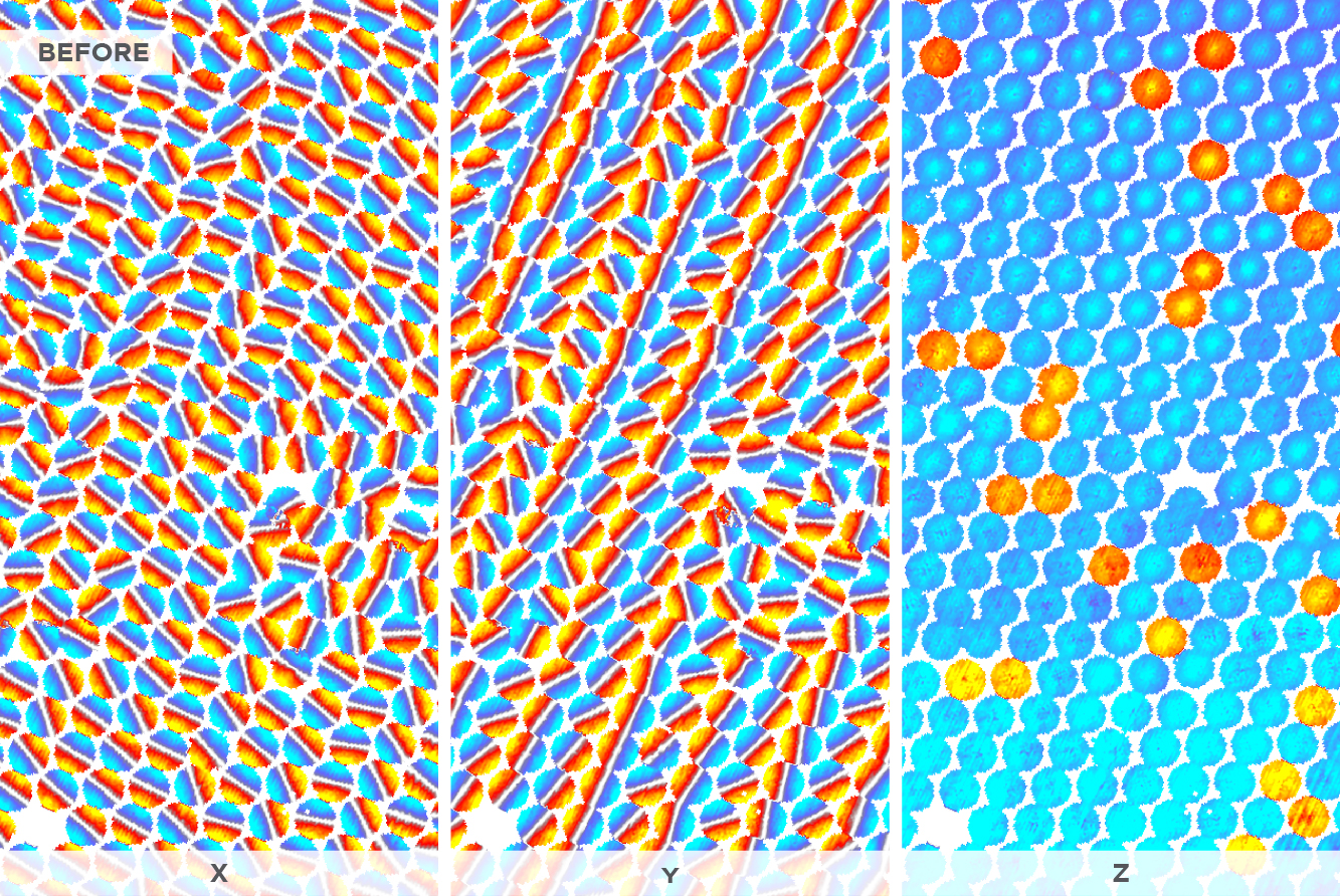 X, Y and Z components before and after rotation QC. We use quaternions to explain the 3-component amplitude distribution given the source-receiver geometry. By exploiting the geophone dipole response and using a statistical analysis we can quickly and efficiently QC every node.