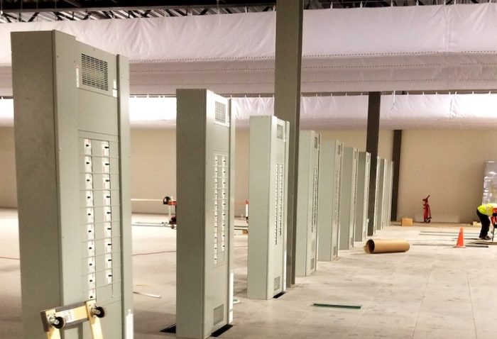 We’ve discussed before the importance of power to Bubba. Now installed is the row of 1MW panel boards, each with 19x 70A breakers that will each have their own individual cables leading to a pair of tanks.
