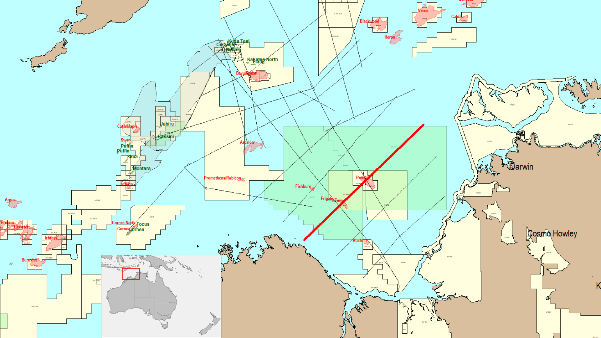 Regional basin-wide 2D seismic grid across the Petrel Sub-basin and Malita Graben