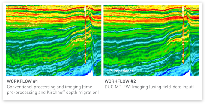 DUG MP-FWI Imaging is a complete replacement for the conventional processing and imaging workflow.