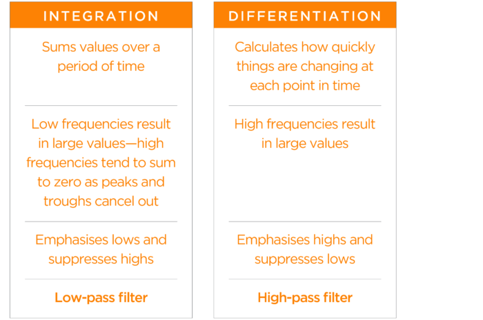 The concepts of integration and differentiation are closely related to signal processing and filtering in particular (and also milk).