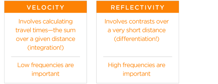 While there is a continuum from low to high frequencies, this helps us to understand why seismic wave transport (kinematics) is controlled more by the lower frequencies, while seismic wave scattering (dynamics) is controlled more by the higher frequencies.