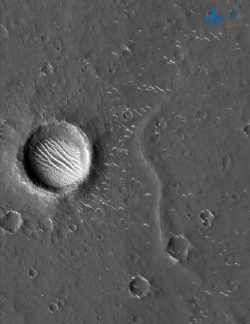 | Incredible HD image taken of a crater on the surface of Mars by the Tianwen-1 orbiter. Photo credit: CNSA/Xinhua/Alamy |