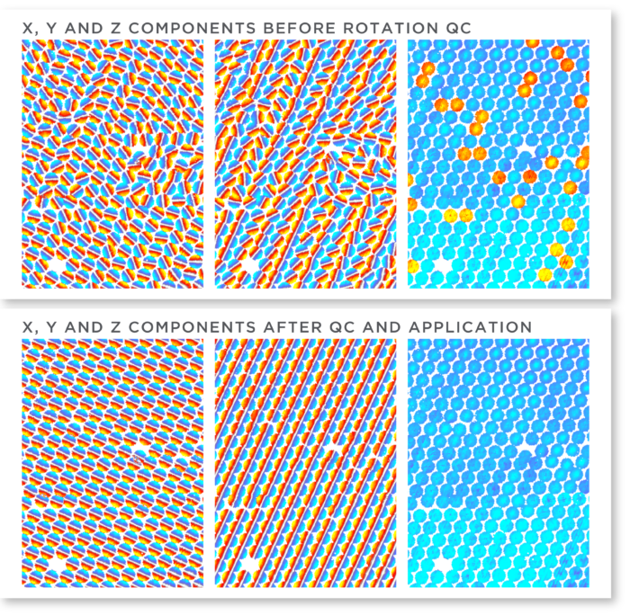 DUG’s OBN Orientation QC workflow simultaneously solves for a range of properties that includes: